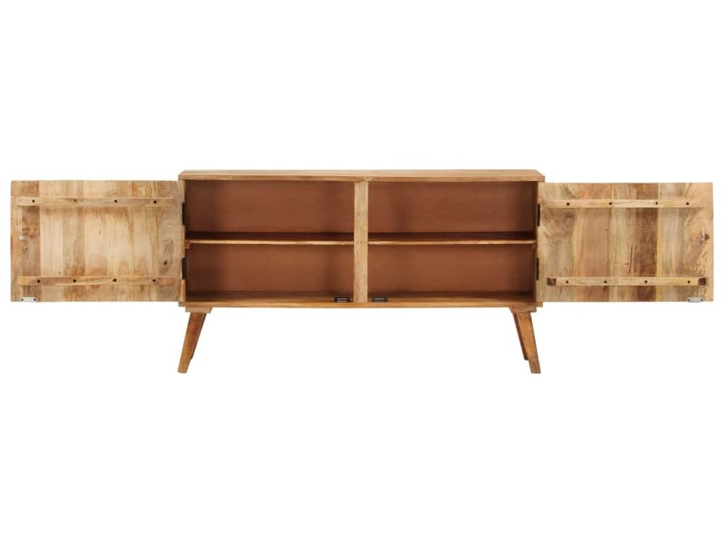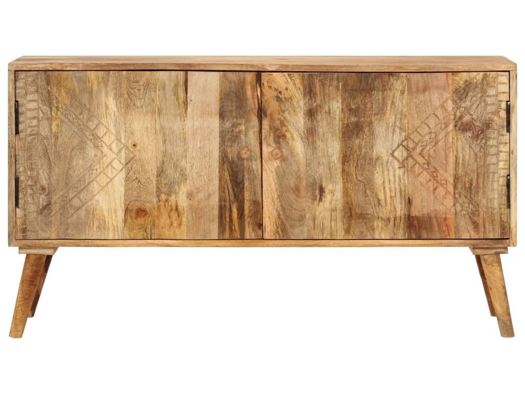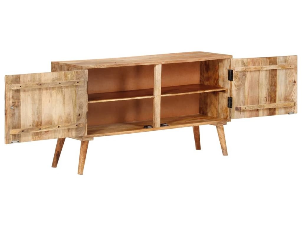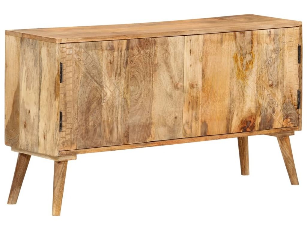 Příborník je vyroben z masivního mangovníkového dřeva a je vysoce stabilní a odolný. Pevná horní deska je ideální k vystavení dekorativních předmětů, jako jsou vázy či pokojové rostliny. Skříňka poskytuje dostatek úložného prostoru pro úhledné uspořádání různých předmětů. Jemně vyřezávaný vzor dodává příborníku jedinečný vzhled. Každá fáze výrobního procesu se provádí s největší péčí, ať už se jedná o leštění, natírání nebo lakování. Sestavení je snadné.