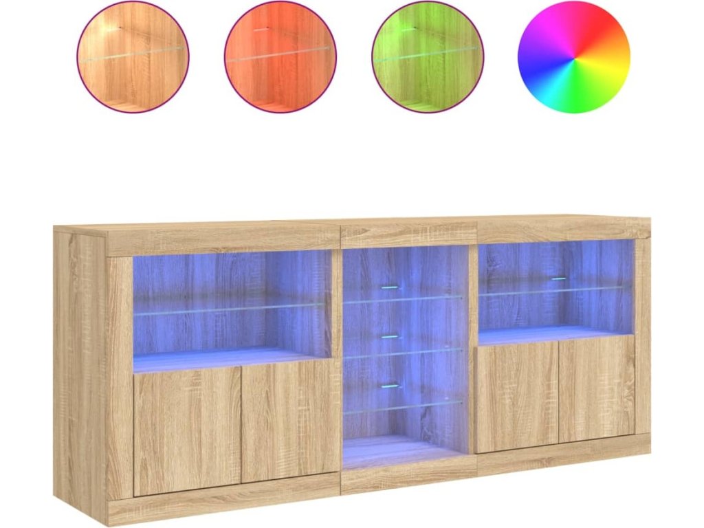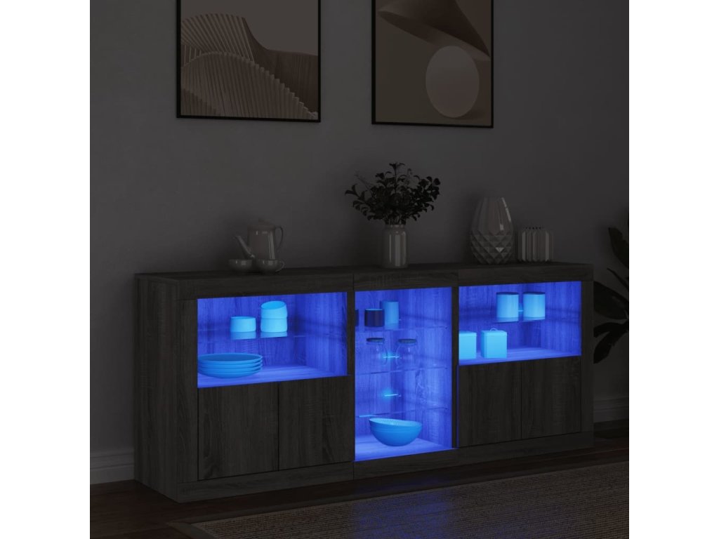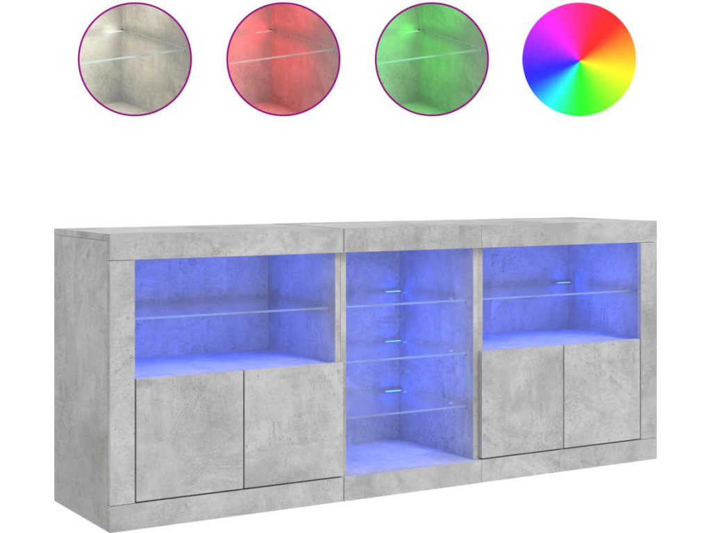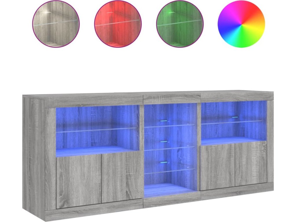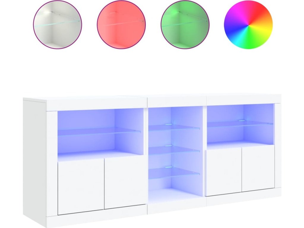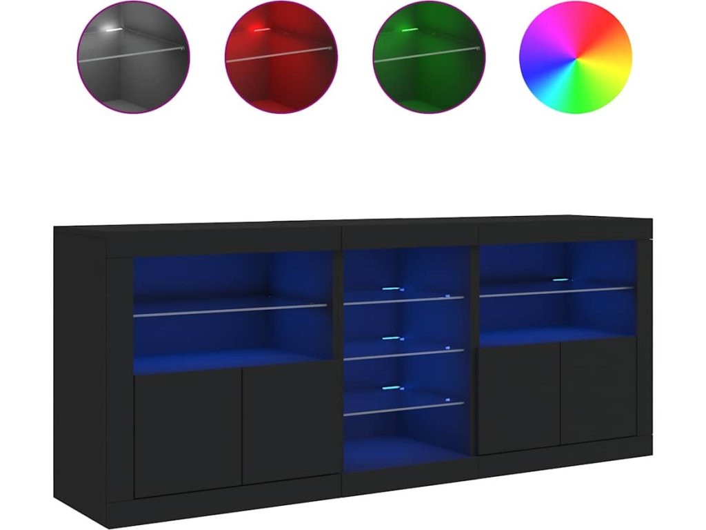 - RGB LED světla: Skříňka je vybavena zářivými RGB LED světly. Různé přizpůsobitelné nabídky vám umožní snadno změnit barvu světel nebo dokonce i nastavit světla tak, aby se přizpůsobila automaticky. Tato LED světla nejen podtrhují moderní vzhled příborníku, ale také mu dodávají na módním půvabu.