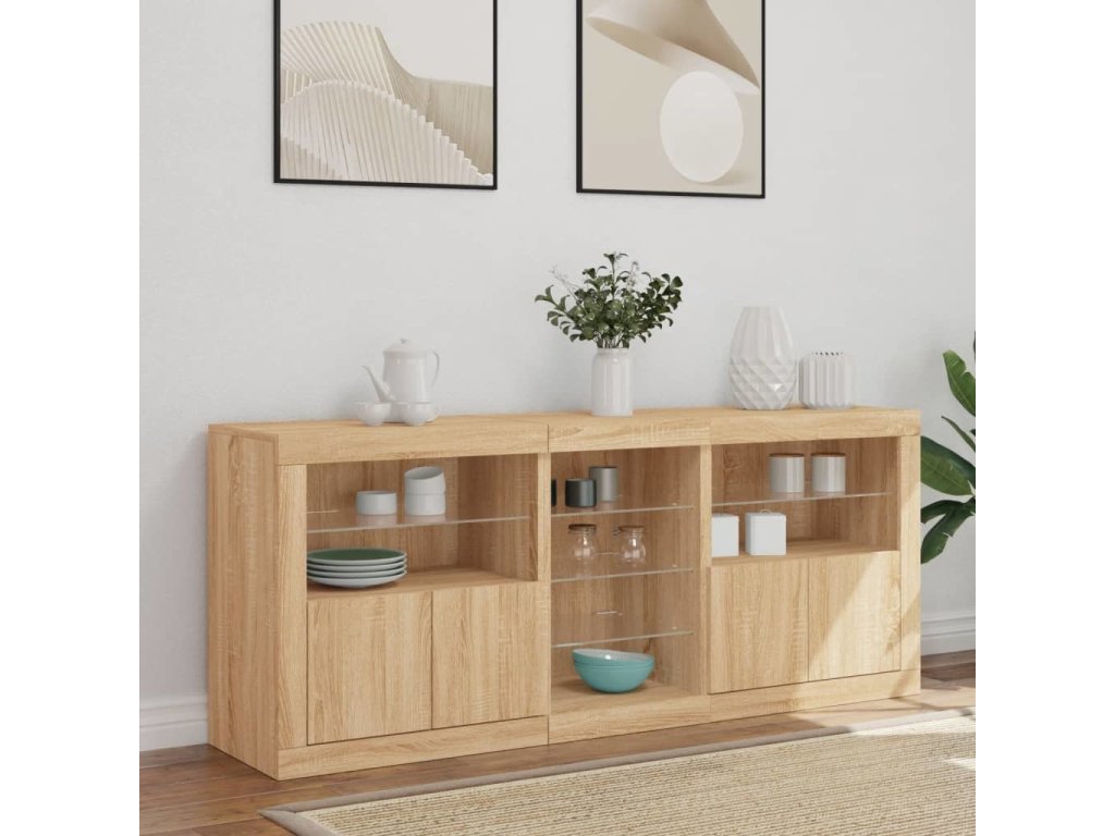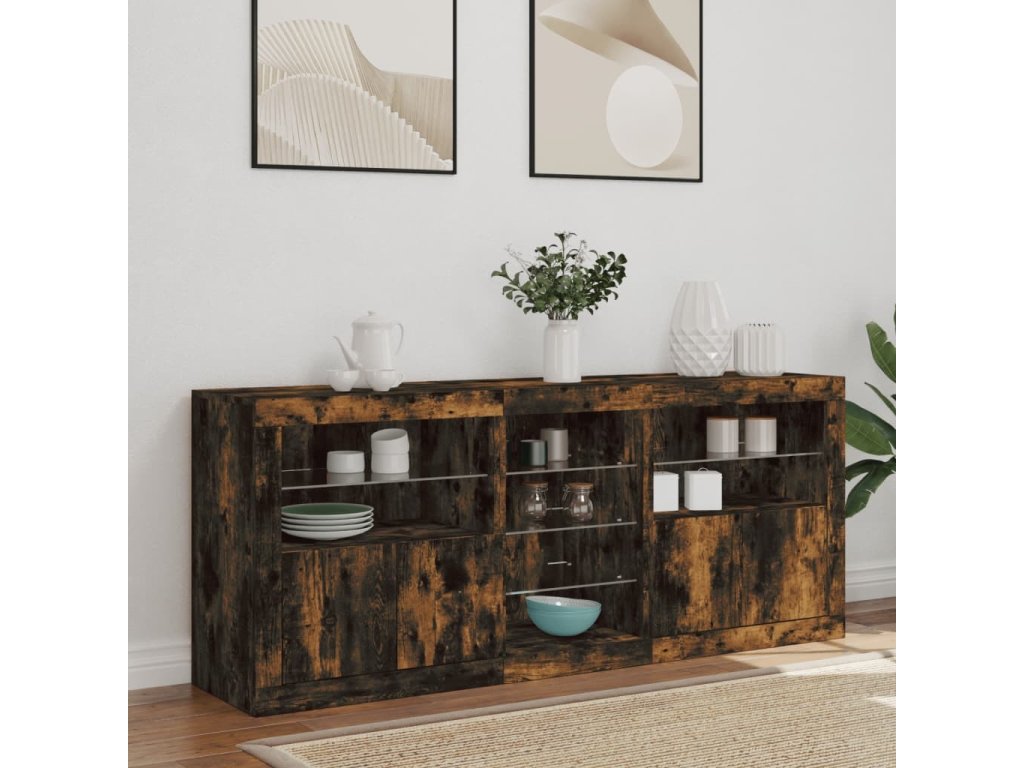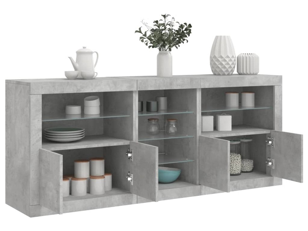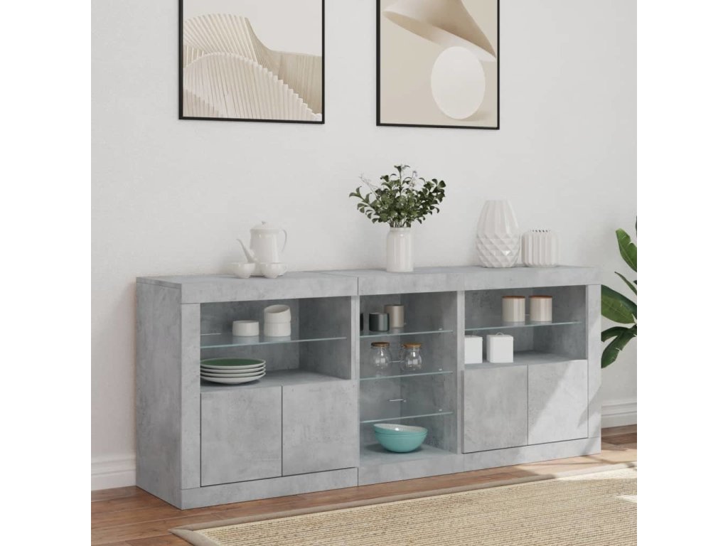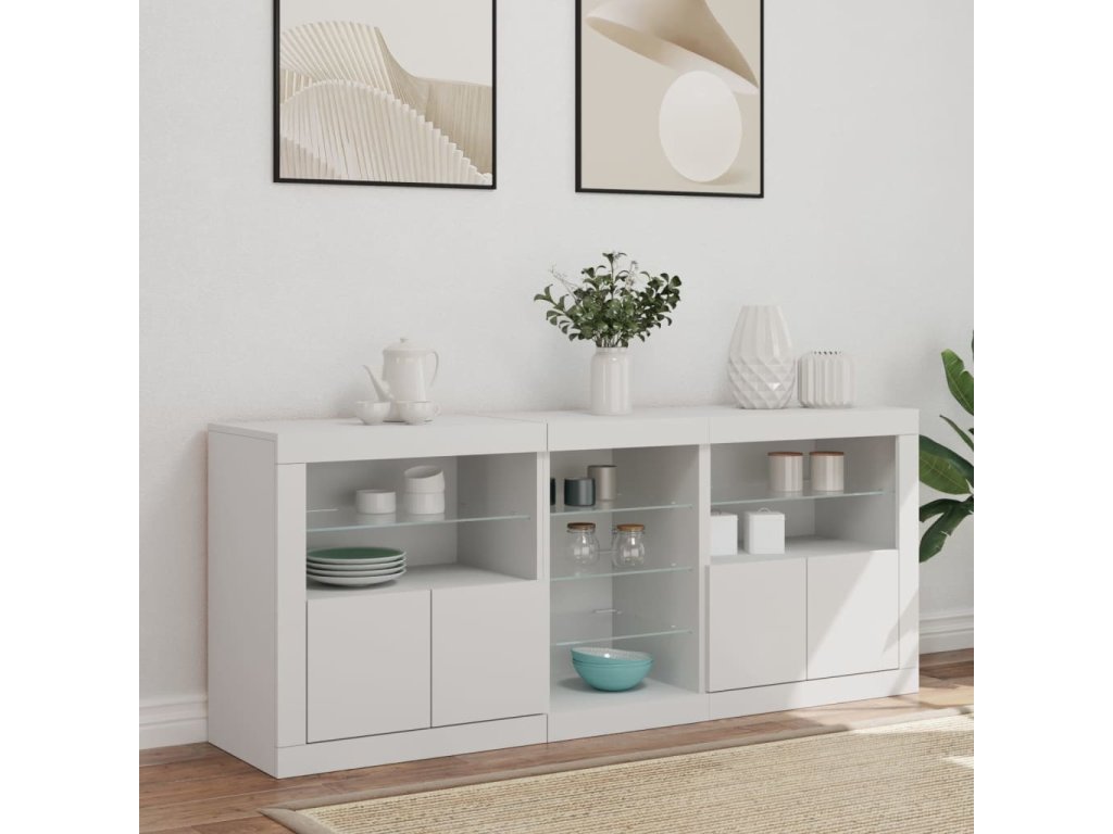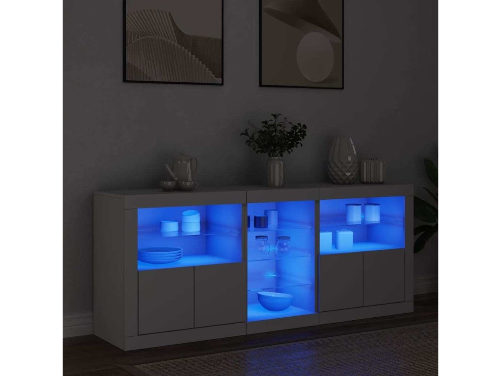 Zkrášlete svůj pokoj tímto moderním příborníkem s LED osvětlením. Snadno jej zkombinujete s nábytkem v jakémkoli stylu ve vašem domě.