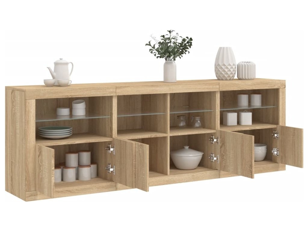 Zkrášlete svůj pokoj tímto moderním příborníkem s LED osvětlením. Snadno jej zkombinujete s nábytkem v jakémkoli stylu ve vašem domě.