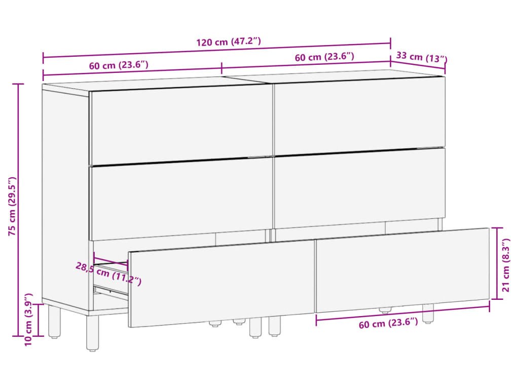 - Celkové rozměry (každý kus): 60 x 33 x 75 cm (Š x H x V)