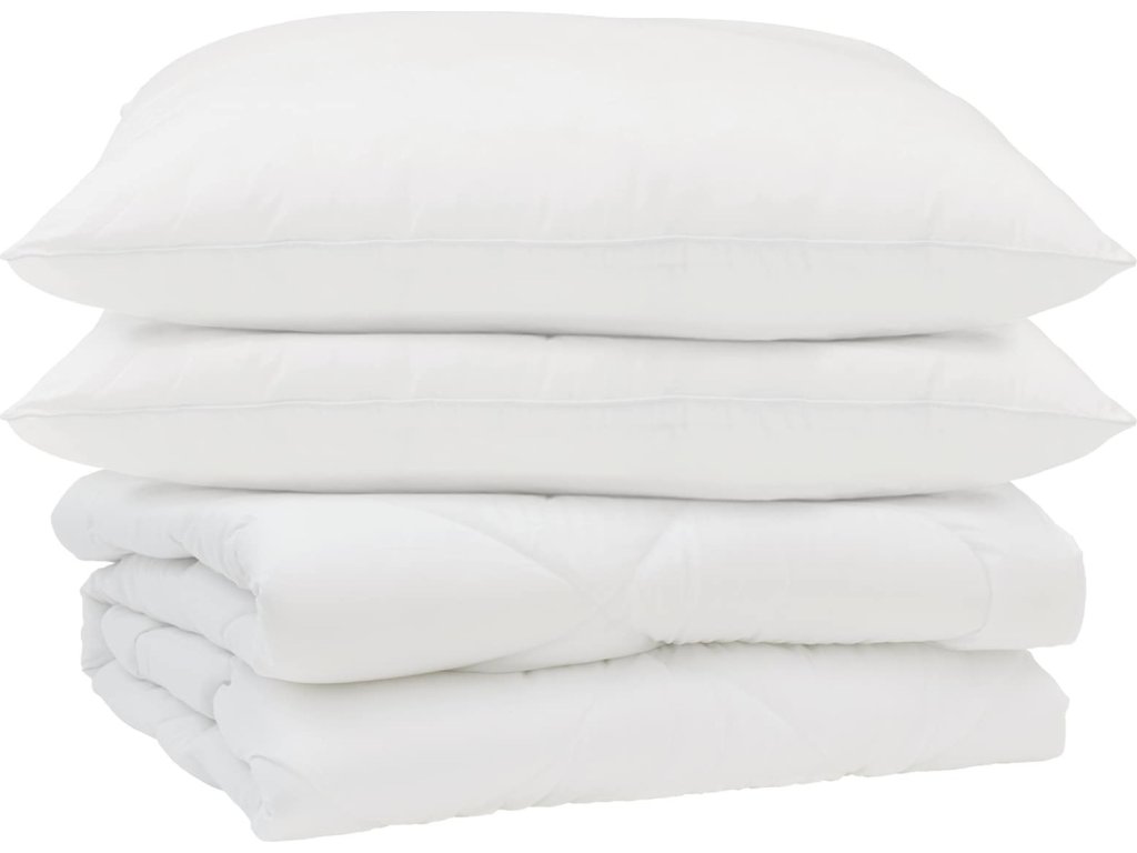 - Součásti Kromě přikrývky dostanete i dva polštáře. Každý polštář má odolný potah z bavlny a polyesteru, plněný podpůrným polyesterovým vláknem. Tohle všechno zajišťuje kvalitní oporu pro hlavu a krk, což přispívá k vaší relaxaci.