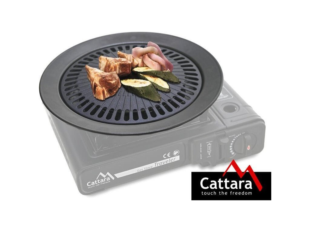 Máte doma cestovní plynový vařič Cattara Traveler? Pořiďte si k němu hliníkový grilovací rošt o průměru 25 cm. Umožní vám pohodlnou přípravu masa nebo zeleniny přímo v terénu. Připravíte na něm hned několik porcí najednou. Smaltovaný talíř je opatřený otvory a žlabem na odkapávající tuk. Pokud do žlabu nalijete trochu vody, zabráníte tak přepalování tuku a snížíte kouřivost při grilování. Těšit se můžete na snadnou údržbu.
