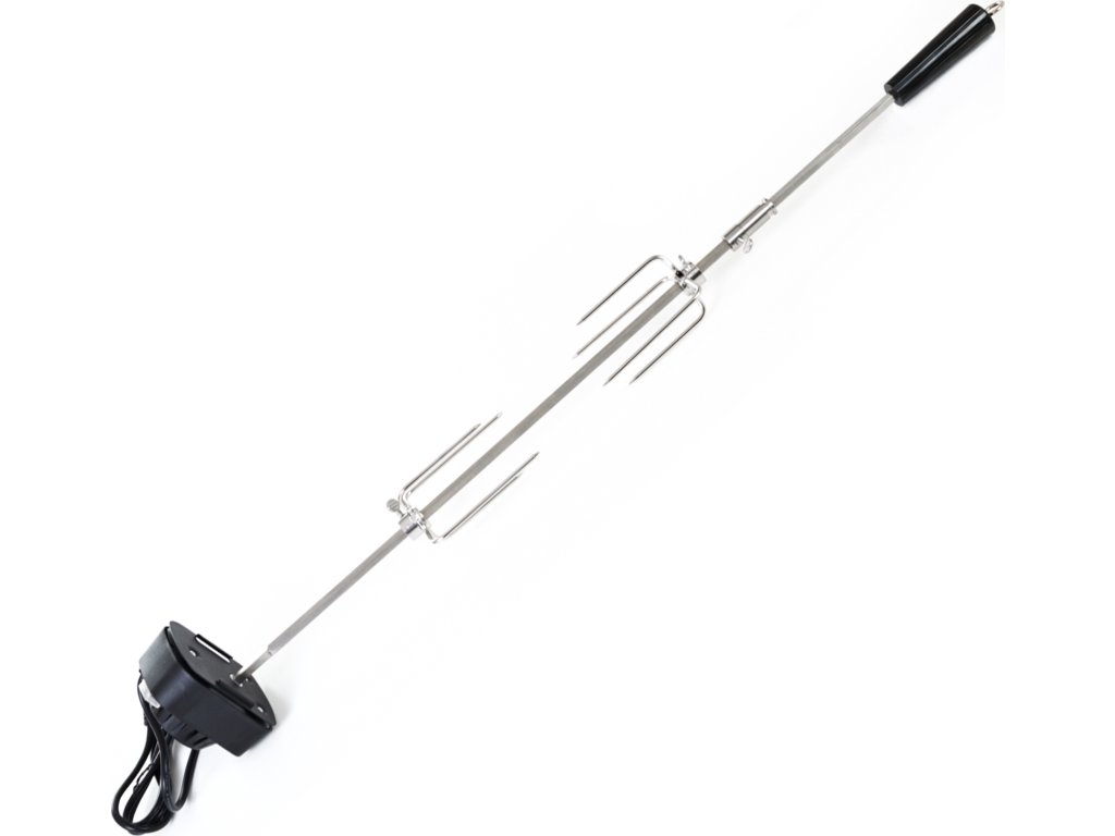 Grilovací jehla s motorem je vyrobena z nerezové oceli a z obou stran je opatřena čtyřmi jehlicemi s aretačními šrouby, díky kterým si můžete jehlice nastavit podle vlastní potřeby.