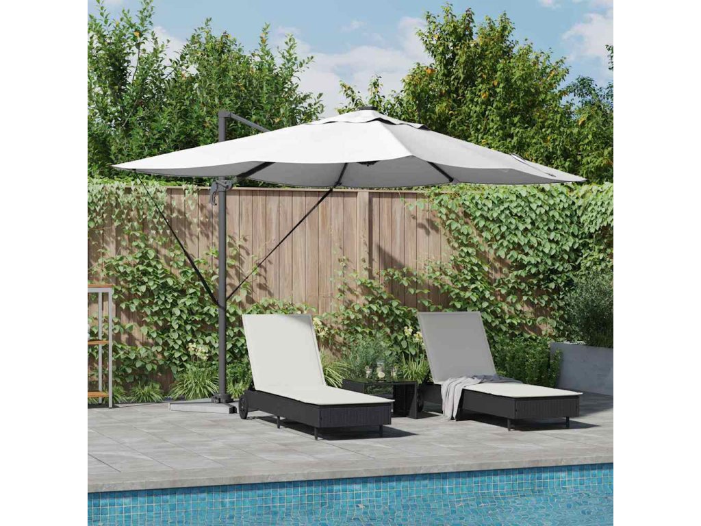 Stylový konzolový deštník Roma přináší parádní stín na slunné dny. Je moderní a funkční a skvěle se hodí na zahrady a terasy. Užijte si venkovní prostor naplno, ať už se chcete uvolnit nebo mít společenskou chvilku. Jeho elegantní tvar a velké rozměry dodají sofistikovaný vzhled, který se hodí nejen na neformální akce, ale i ty elegantnější.