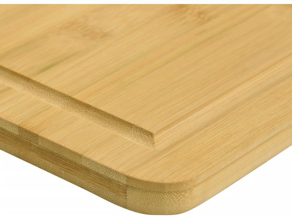 - Drážka na šťávy: Drážka je blízko okraje, aby se maximalizovala plocha na krájení a zároveň se dokonale zachytily přebytečné tekutiny, aniž by přetekly na pracovní desku.
