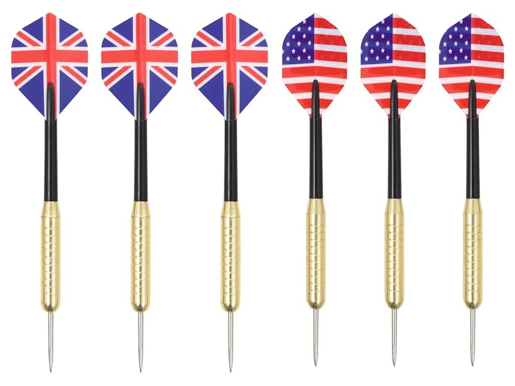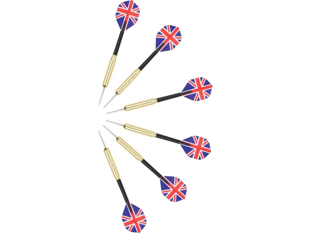 - Materiál šipky: ocelová špička + PET letka + tělo s mosazným povrchem