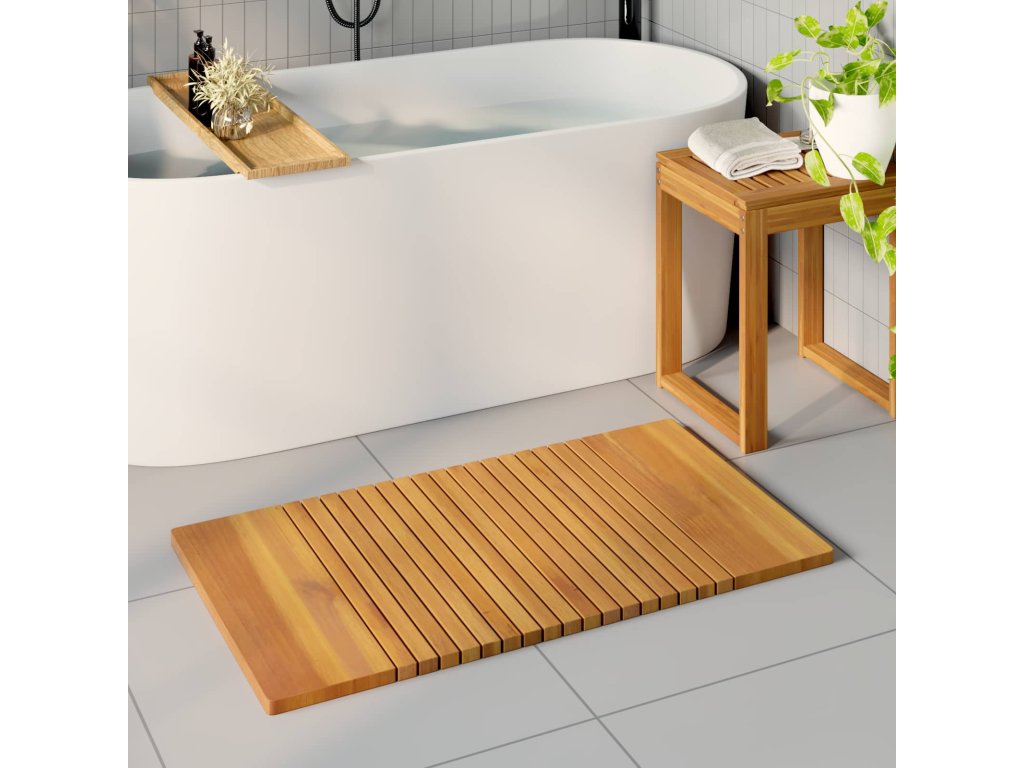 Tato elegantní dřevěná koupelnová rohož přetváří vaši koupelnu na minimalistickou oázu, nabízí skvělou funkčnost a styl. Hladký povrch a jednobarevný vzor se jednoduše hodí do každého zařízení, poskytují čistý vzhled a zároveň zajišťují bezpečný a nekluzký povrch.