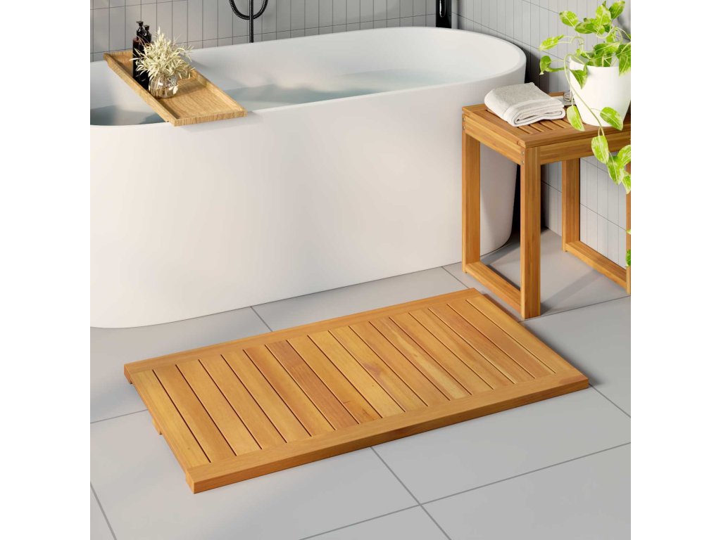 - Jednoduchý a univerzální styl Díky klasické hladké textuře, tahle koupelnová podložka představuje funkční krásu. Olejovaný povrch podtrhuje její přirozený vzhled a zároveň chrání před vlhkostí, takže si uchovává hezký vzhled a funkčnost v různých prostředích, jako jsou koupelny nebo zakryté balkony.
