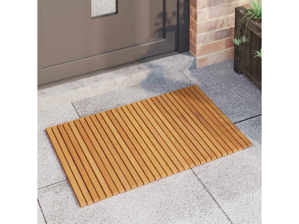- Dřevěná konstrukce: Rohož je vyrobená ze dřeva, takže je trvanlivá a vypadá přírodně. Olejový povrch zdůrazňuje její barvu a chrání ji před vlhkostí, takže vypadá stále skvěle.
