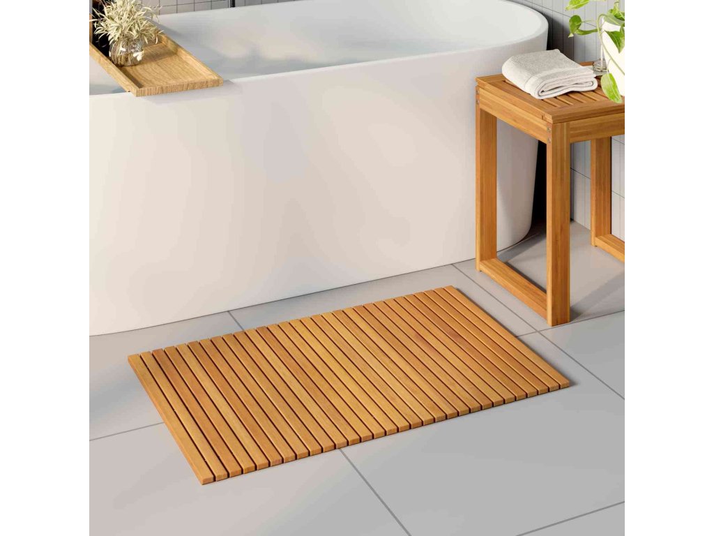 Tato dřevěná koupelnová rohož je skvělým kouskem pro každý prostor, ať už do koupelny nebo na balkon, a přináší jednoduchost a eleganci se svým minimalistickým designem. Vyrobená ze dřeva, její hladký povrch dodává kousek sofistikovanosti a tepla. Je navržena pro použití uvnitř i venku, a tedy pro ty, kdo hledají styl i funkčnost ve své domácí výzdobě. Přírodní hnědá barva ladí s jakýmkoli interiérem, její praktické funkce ji činí ideální nejen do koupelen.