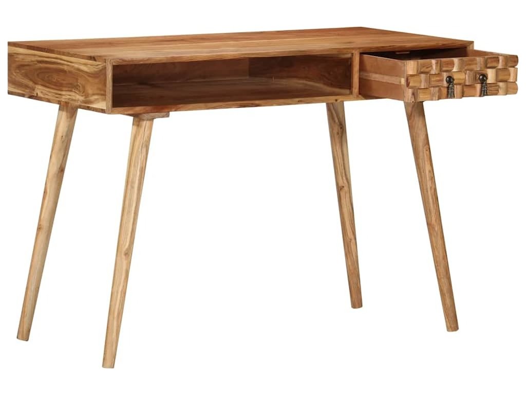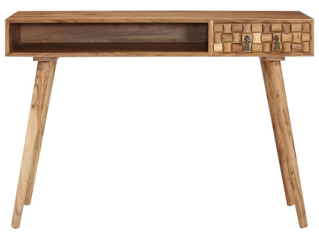 Tento psací stůl je vyroben z masivního akáciového dřeva s přírodní povrchovou úpravou a vypadá nádherně. Tento studijní stůl má 1 zásuvku a 1 přihrádku, které poskytují prostor pro úhledné uspořádání poznámkových bloků, knih a různých předmětů. Kromě toho může tento počítačový stolek sloužit také jako konzolový, předsíňový nebo odkládací stolek.