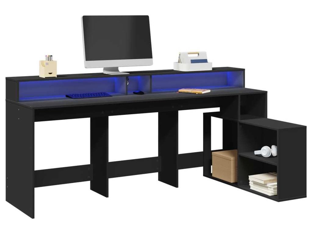 Tento psací stůl s velkým úložným prostorem, odolnou konstrukcí a LED osvětlením je ideální pro vytvoření organizovaného a stylového pracovního nebo herního prostoru.