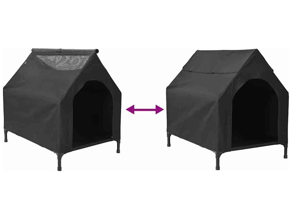 - Komplexní komponenty Psí domek má rolovací okenní kryty, které zvyšují jeho variabilitu a umožňují nastavit světlo a ventilaci uvnitř. Tyto kryty se snadno upevňují suchým zipem, což zaručuje jednoduché ovládání. Síťové okna ventilují vzduch a brání hmyzu, takže váš pejsek bude v pohodlí i v teplém počasí.