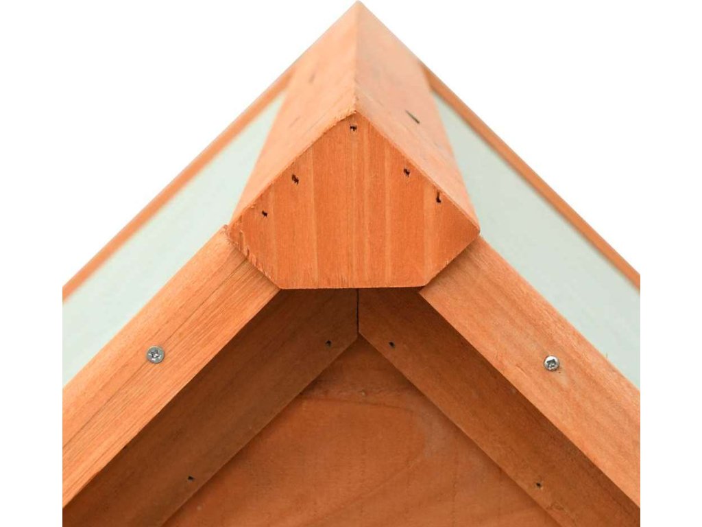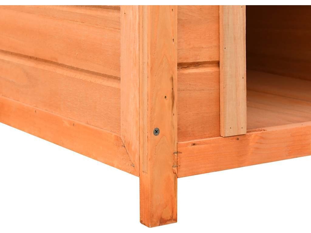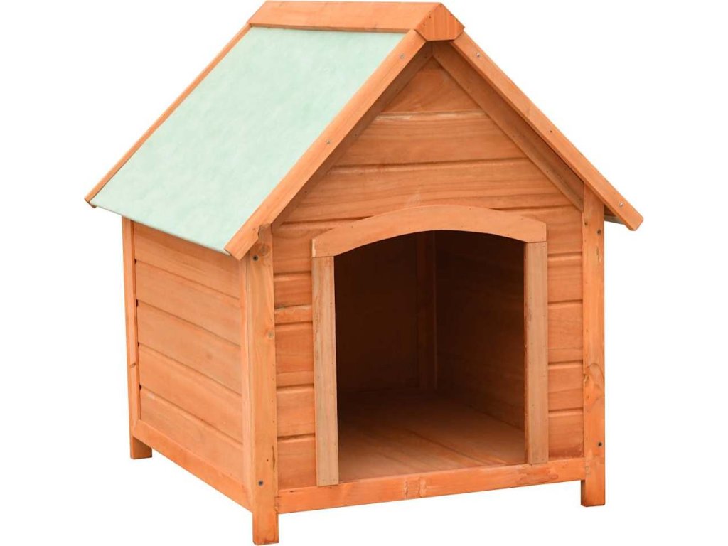 Venkovní psí kotec má rám z masivního dřeva, takže je pevná a odolná. Zelená tkanina, jež pokrývá střechu, je odolná vůči vlivům počasí a zamezuje vniku deště. Dřevěná bouda pro psy vnese do vaší zahrady rustikální kouzlo. Její sestavení je snadné.