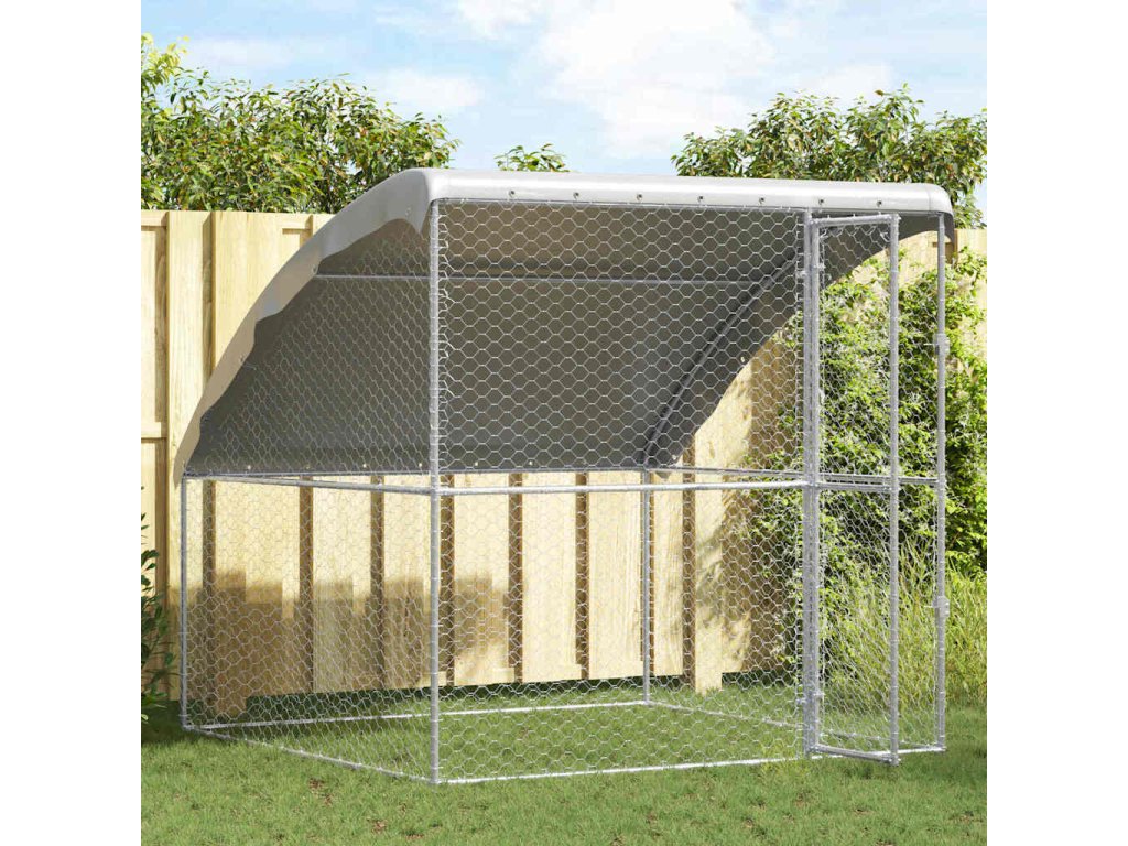 Psí kennel s úložištěm Stříbrná 2 x 2 x 2 m Pozinkovaná ocel [42008377]