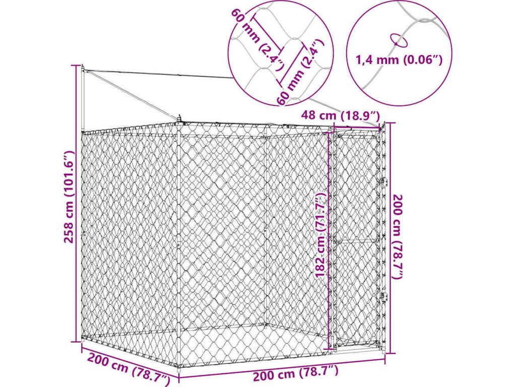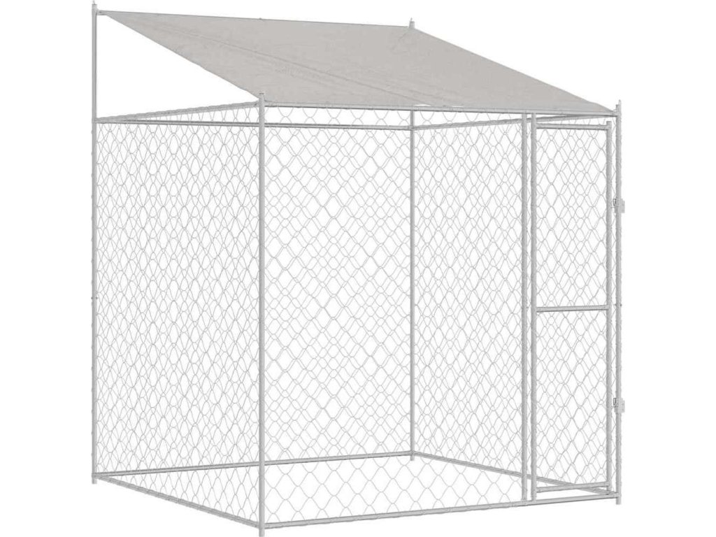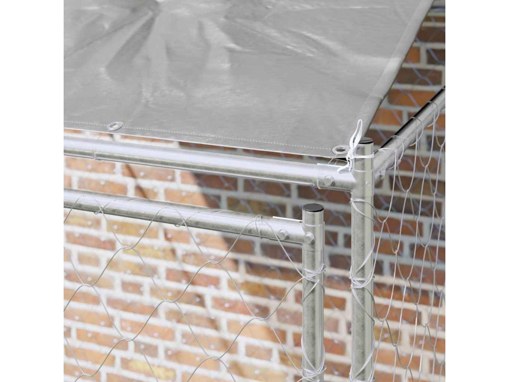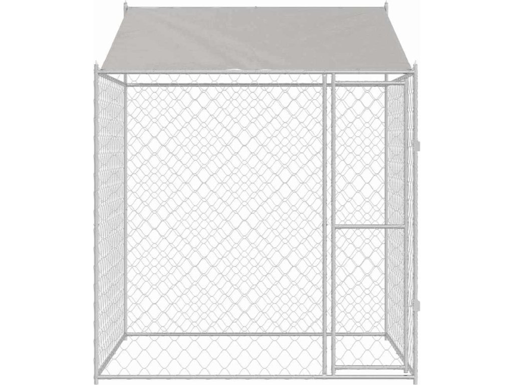 Psí klec s střechou Stříbrná 200 x 200 x 258 cm Ocel a PE [42009131]