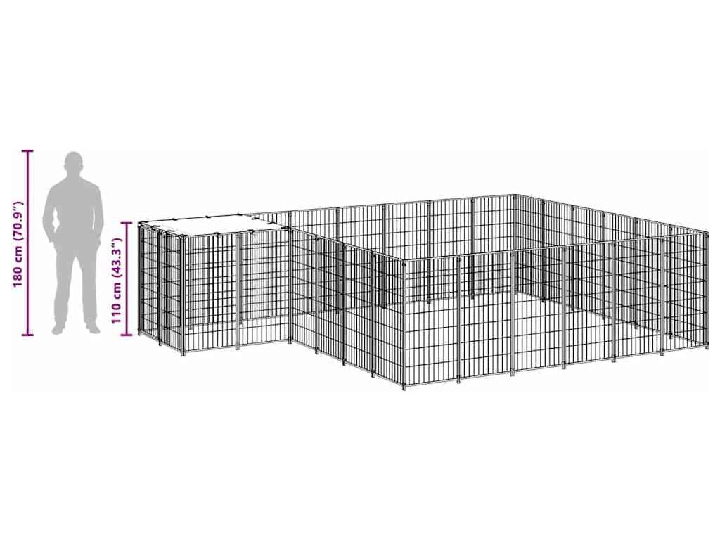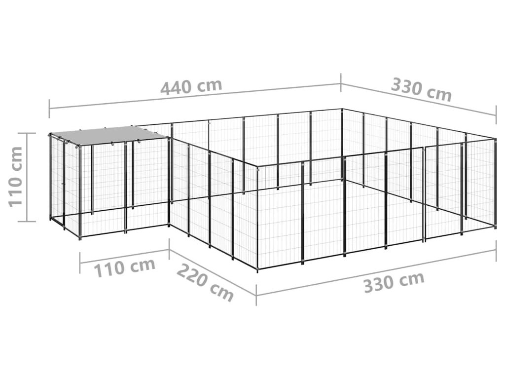 Velká psí klec poskytuje dostatek prostoru pro cvičení, zatímco ocelová stěna z pletiva pomáhá předcházet neočekávaným nehodám a zároveň umožňuje větrání. Díky robustní ocelové konstrukci je tento kotec pro domácí mazlíčky odolný a vyrobený pro dlouhou životnost. Dodává se s polyethylenovou střechou, která je voděodolná a odolná vůči UV záření. Dveře mají navíc uzamykatelnou západku, která zajišťuje větší bezpečnost a ochranu vašich psů.