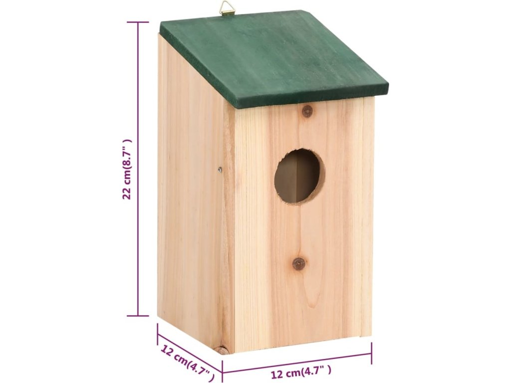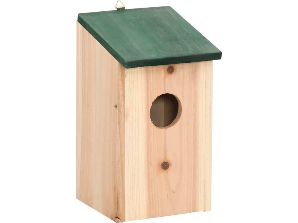 Poskytne ideální zázemí vašim opeřeným přátelům a zároveň projasní vaši zahradu. Se svou přírodní dřevěnou barvou a zelenou stříškou bude nejen perfektním místem pro hnízdění ptáků, ale také skvělou ozdobou vaší zahrady. Budka je v horní části vybavená kovovým hákem, takže ji snadno zavěsíte kdekoliv na vaší zahradě.