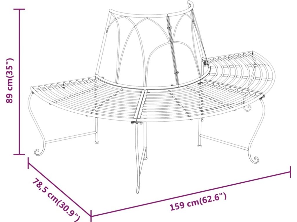 Půlkruhové lavice kolem stromu 2 ks Ø 159 cm černé ocel [3095717]