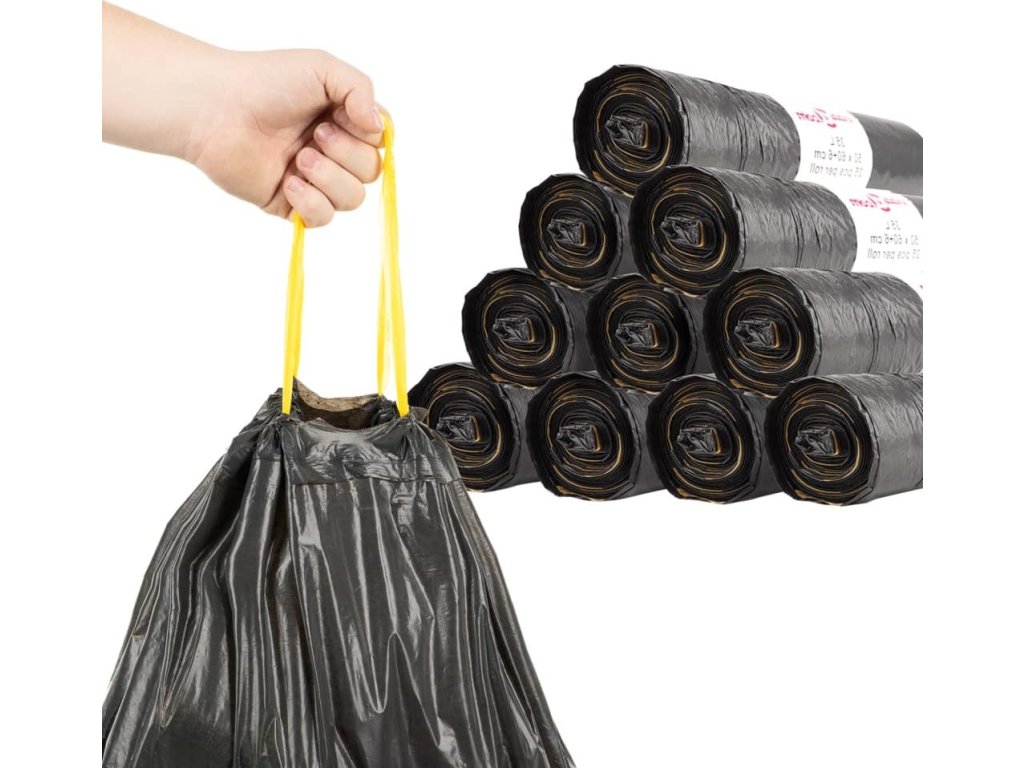 - Pevná stahovací šňůrka: Pytle na odpadky mají pevné stahovací šňůrky pro snadné upevnění, zvedání a přenášení, díky čemuž je jejich používání pohodlné a efektivní.