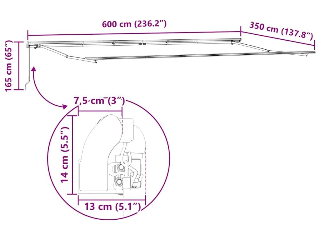 - Kvalitní hliník Tento rám markýzy je vyrobený z top hliníku, což zaručuje jeho dlouhou životnost a odolnost proti povětrnostním podmínkám. Hliník zajišťuje, že všechny prvky zůstanou v dobrém stavu.