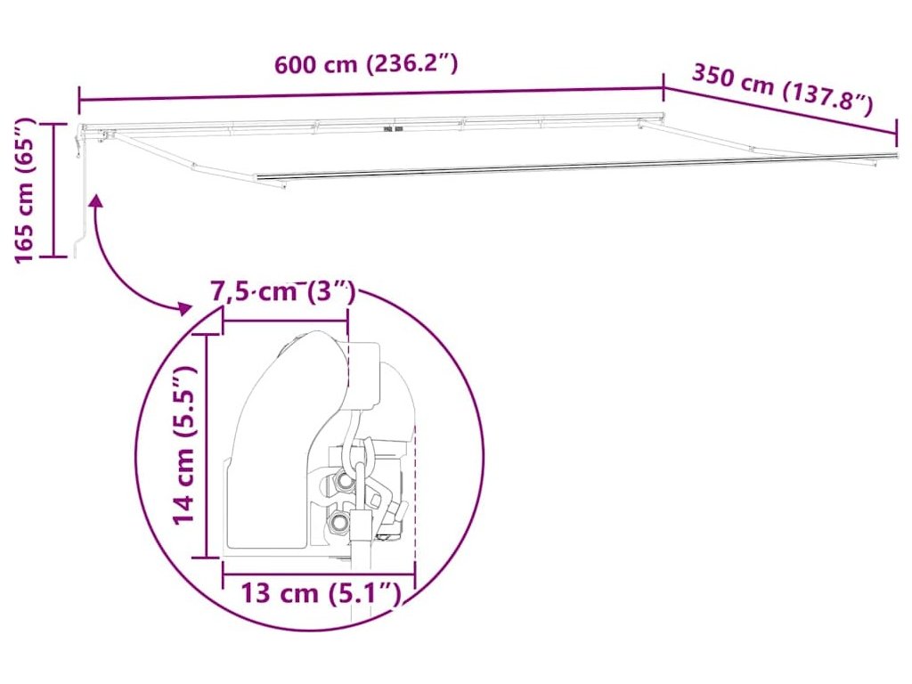 Rám markýzy Bílá 600 × 350 cm Hliník [313218]