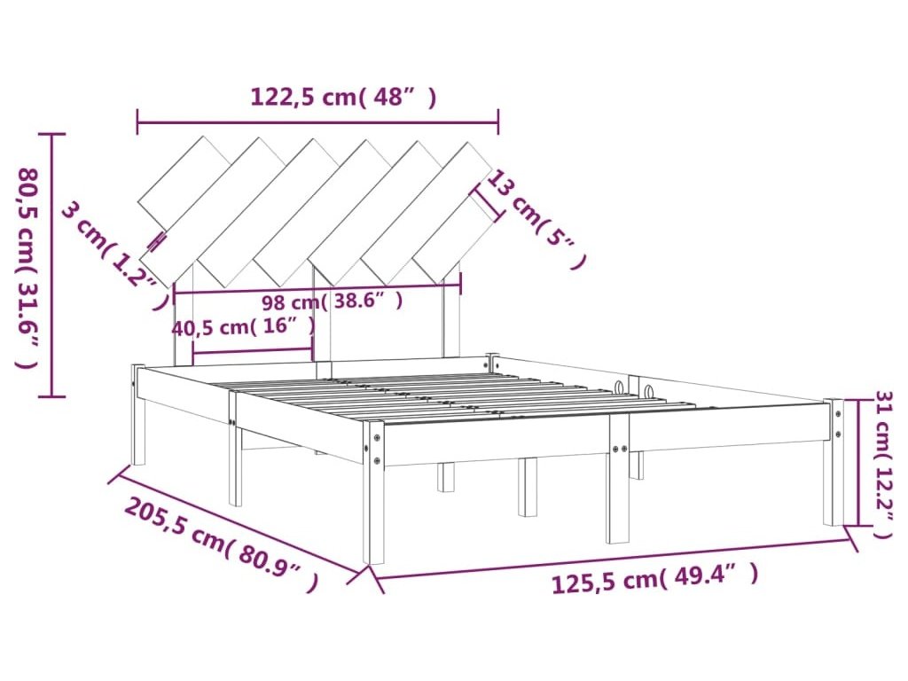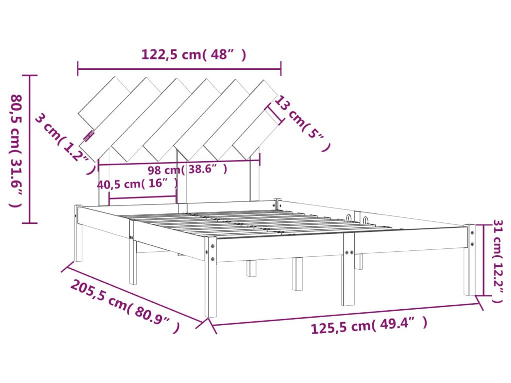 - Rozměry rámu postele: 205,5 x 125,5 x 31 cm (D x Š x V)