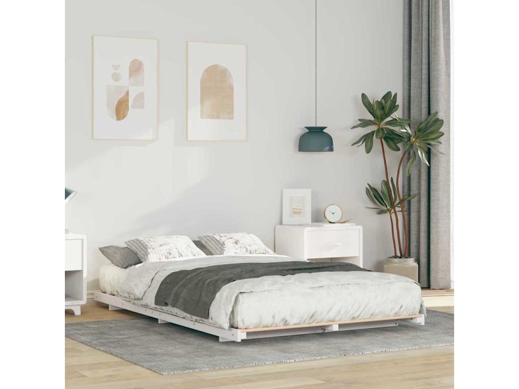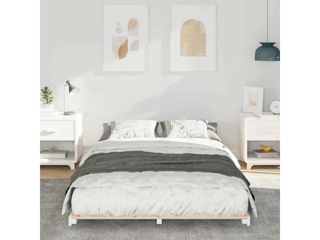 Rám postele Bílá 135 x 190 cm Masivní borovicové dřevo [873080]
