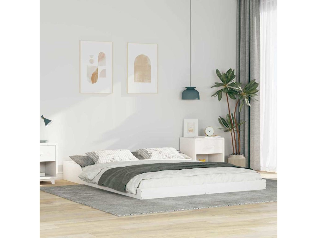 Rám postele Bílá 160 x 220 cm Masivní borové dřevo [873377]