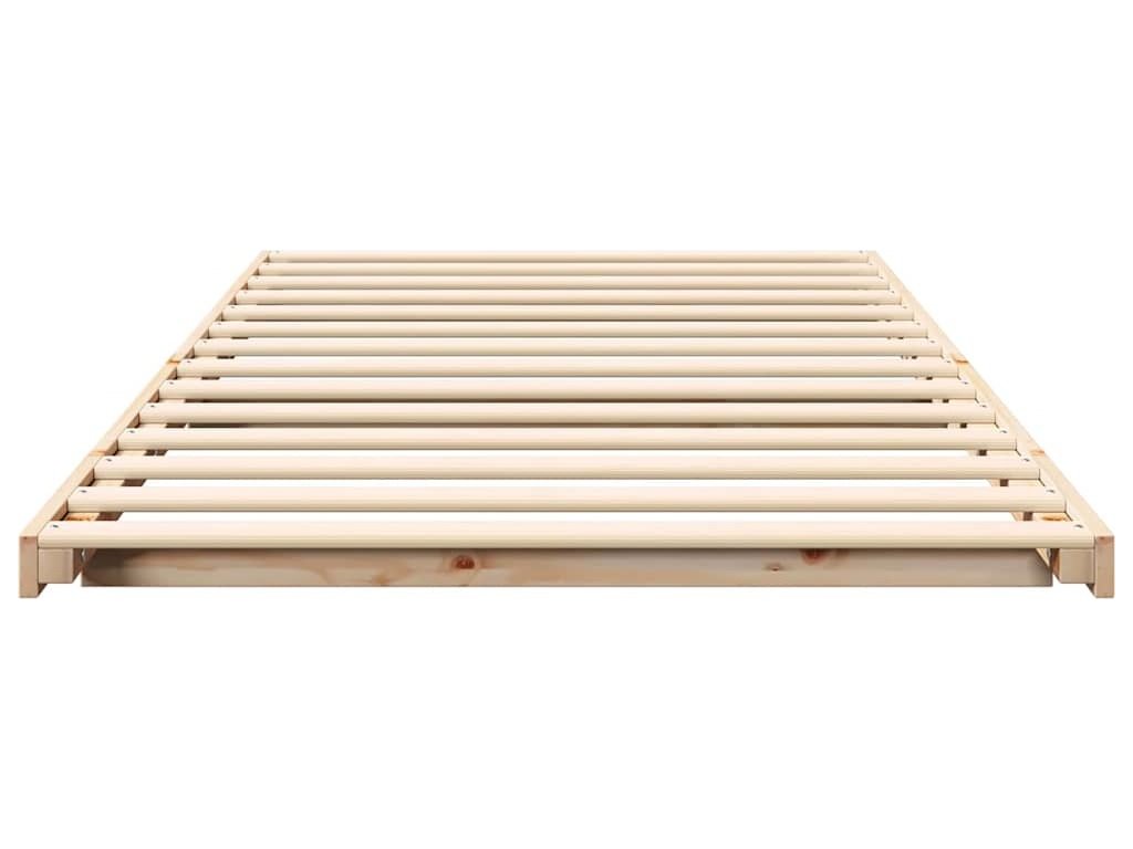 - Masivní borové dřevo: Rám postele je z kvalitního masivního borového dřeva, známého svou silou a stabilitou. Tento materiál zajišťuje trvalou odolnost postele a spolehlivou oporu každou noc. Jeho přírodní tóny dodávají teplo a hodí se do různých ložnicových stylů.