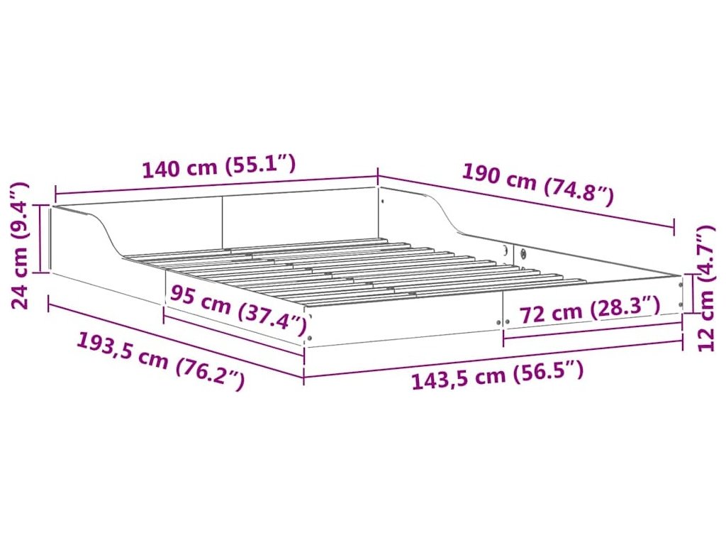 - Velikost matrace: Krátká dvojpostel (140 cm x 190 cm nebo 55" x 75")