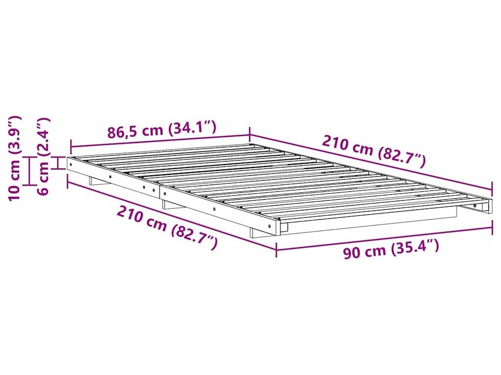 Rám postele Hnědá 90 x 210 cm Masivní borovicové dřevo [873103]