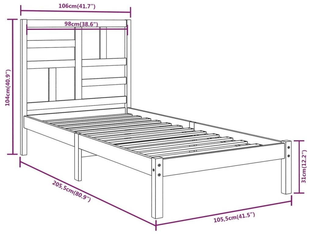 - Rozměry čela postele: 106 x 4 x 104 cm (Š x H x V)