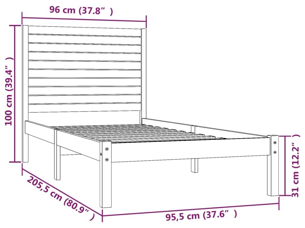 - Celkové rozměry rámu postele: 205,5 x 96 x 100 cm (D x Š x V)