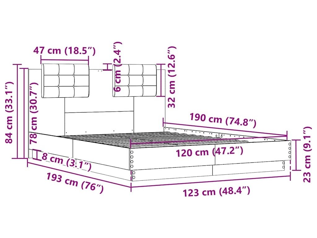 | Vhodné rozměry matrace: | 120 x 190 cm (Š x D) (matrace není součástí balení) |