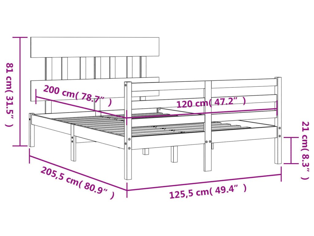 - Celkové rozměry postele: 205,5 x 125,5 x 81 cm (D x Š x V)