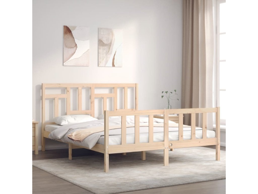 Rám postele s čelem 160 x 200 cm masivní dřevo [3193155]