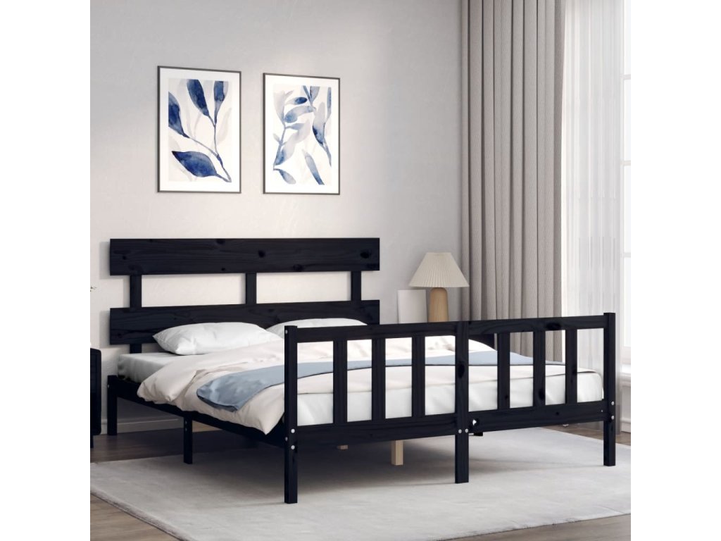 Rám postele s čelem 160 x 200 cm masivní dřevo [3193285]
