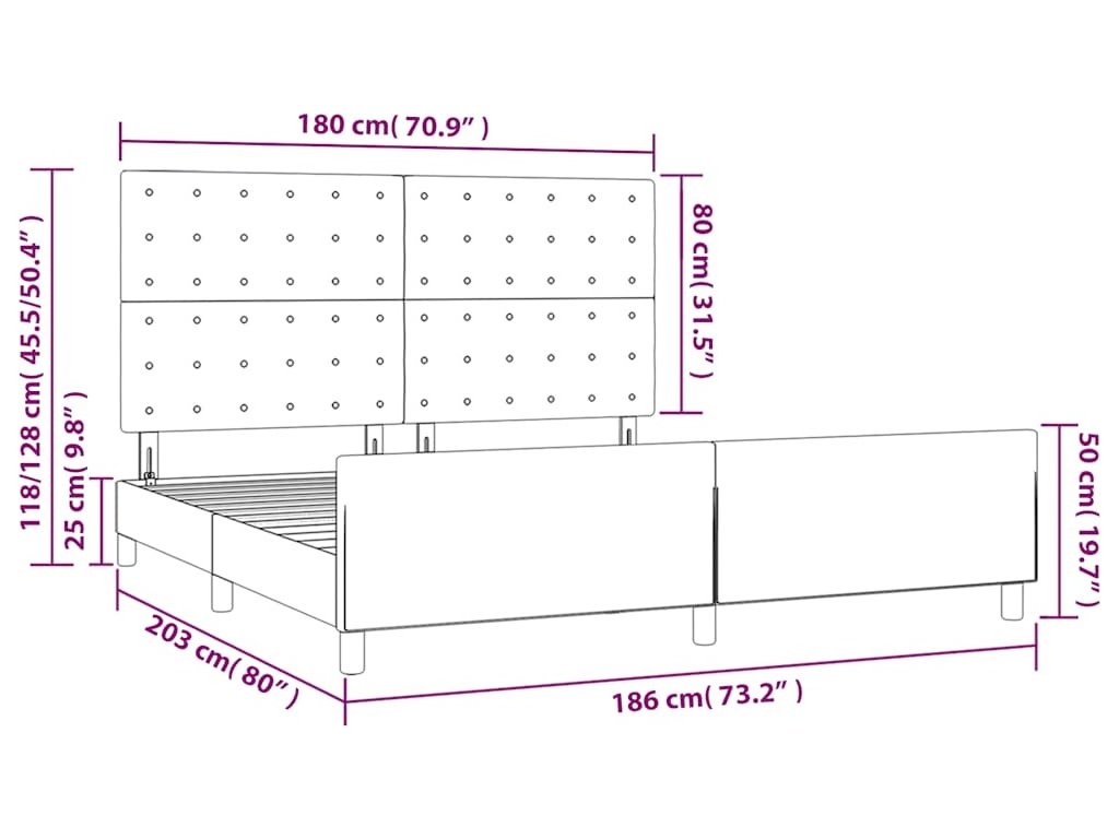 | Vhodné rozměry matrace: | 180 x 200 cm (Š x D) (matrace není součástí balení) |
