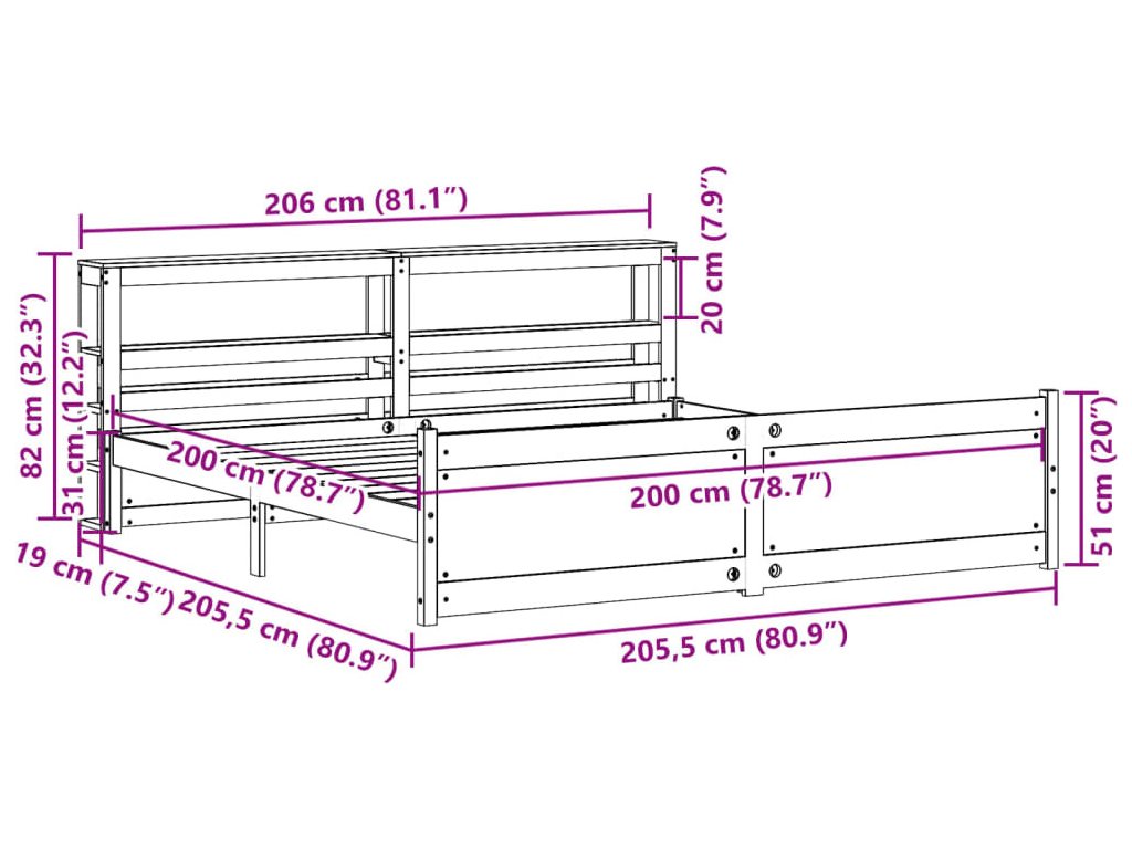 - Rozměry čela postele: 206 x 19 x 82 cm (D x Š x V)