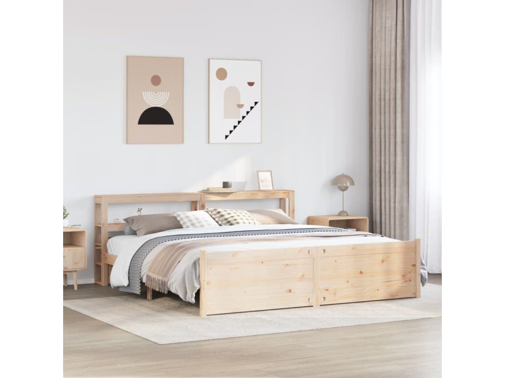 Rám postele s čelem 200 x 200 cm masivní borové dřevo [3306029]
