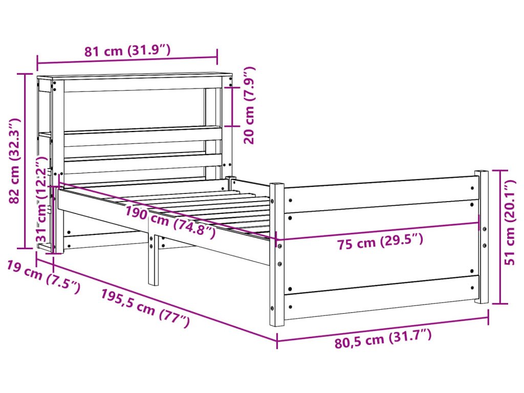 Rám postele s čelem 75 x 190 cm masivní borovice [3306005]