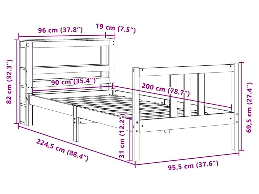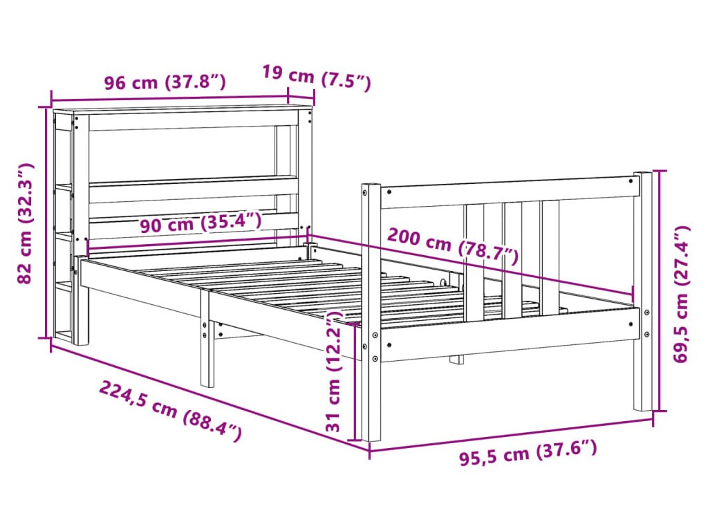 - Rozměry čela postele: 96 x 19 x 82 cm (D x Š x V)