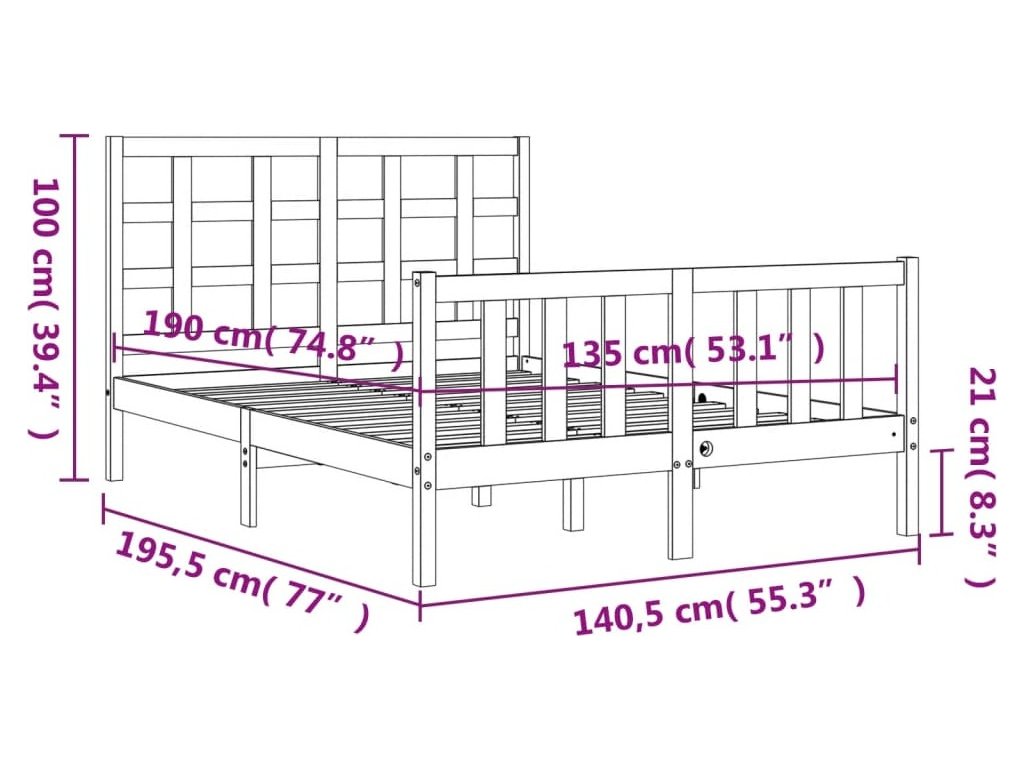 - Celkové rozměry postele: 195,5 x 140,5 x 100 cm (D x Š x V)