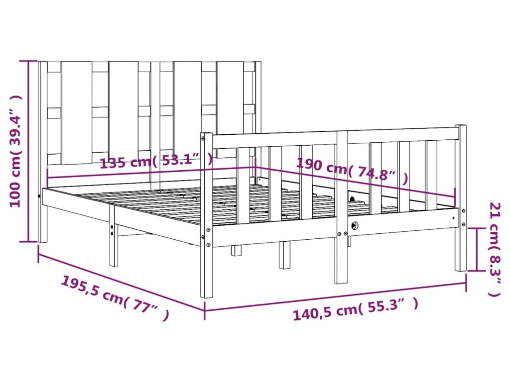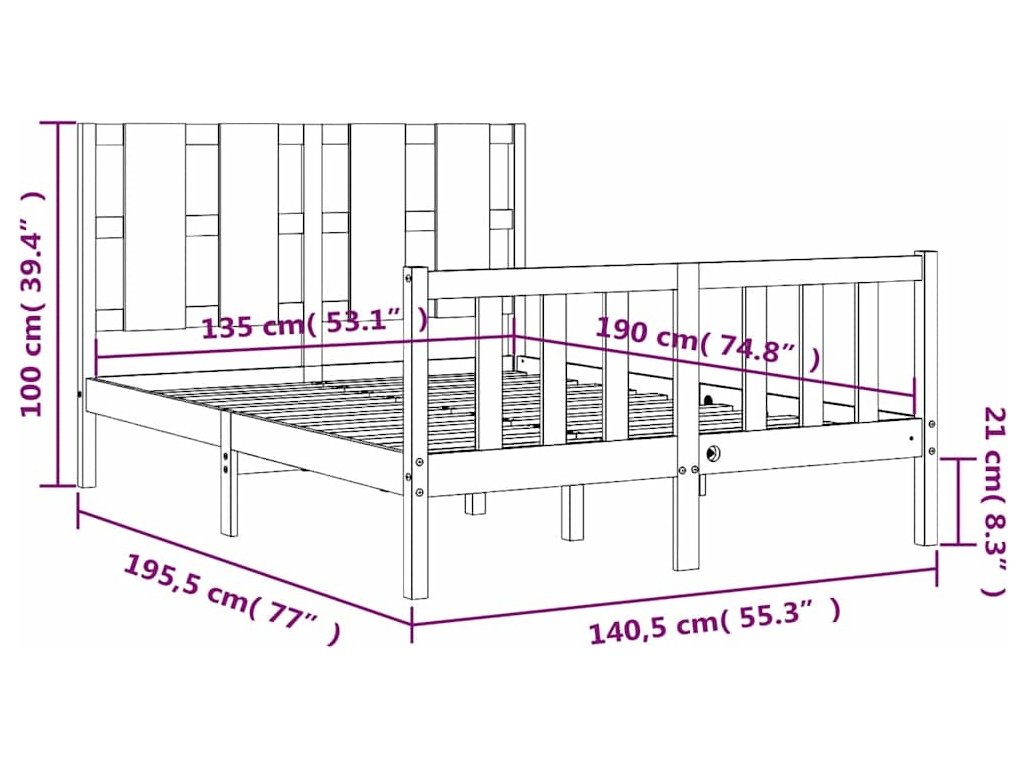 - Celkové rozměry postele: 195,5 x 140,5 x 100 cm (D x Š x V)