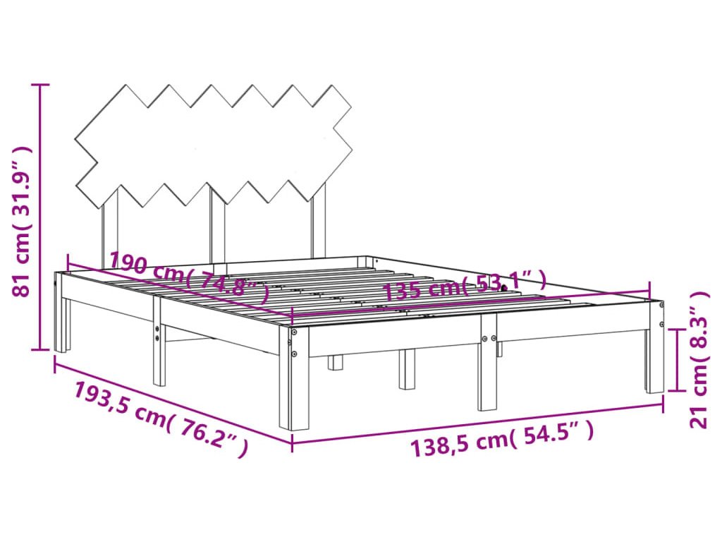 - Celkové rozměry postele: 193,5 x 138,5 x 81 cm (D x Š x V)