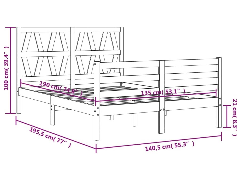 - Celkové rozměry postele: 195,5 x 140,5 x 100 cm (D x Š x V)