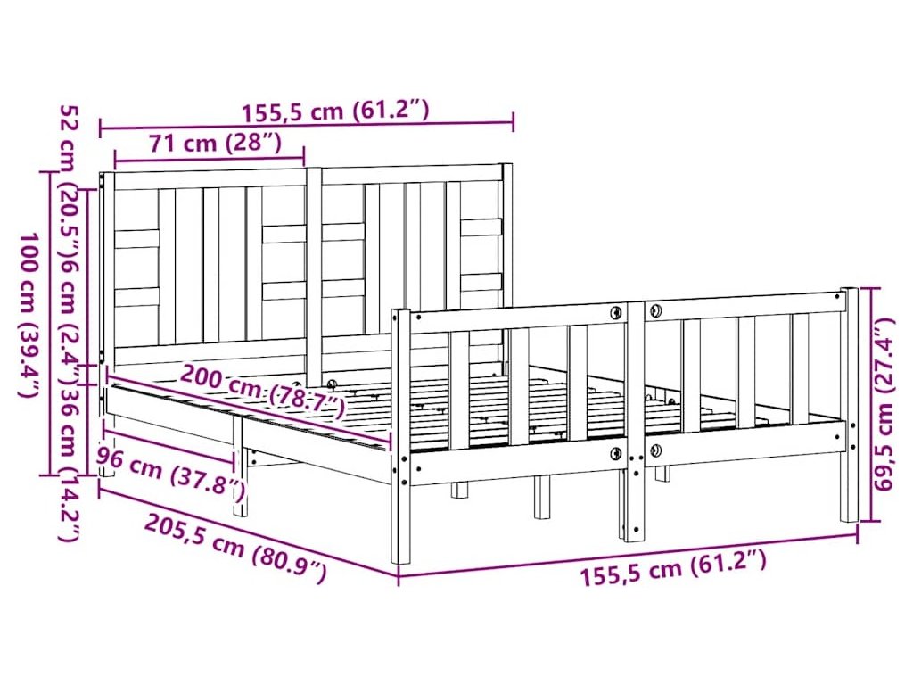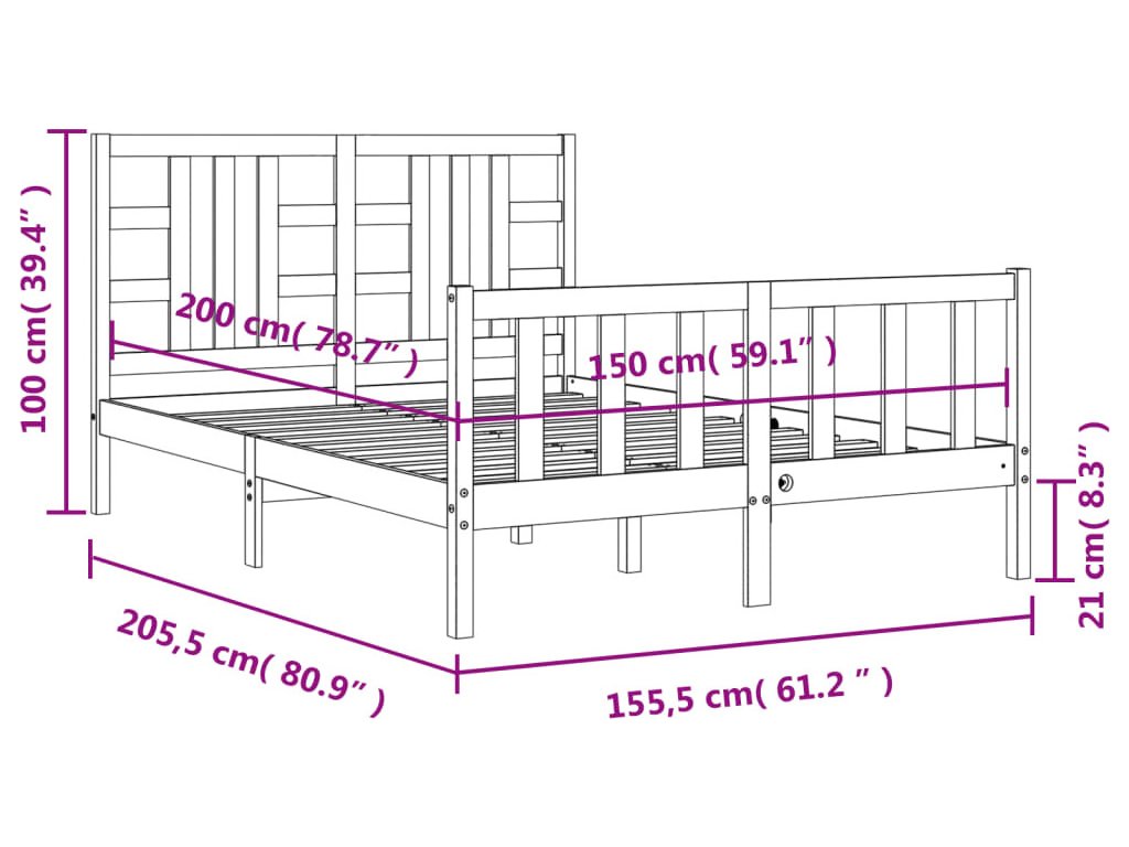 - Celkové rozměry postele: 205,5 x 155,5 x 100 cm (D x Š x V)