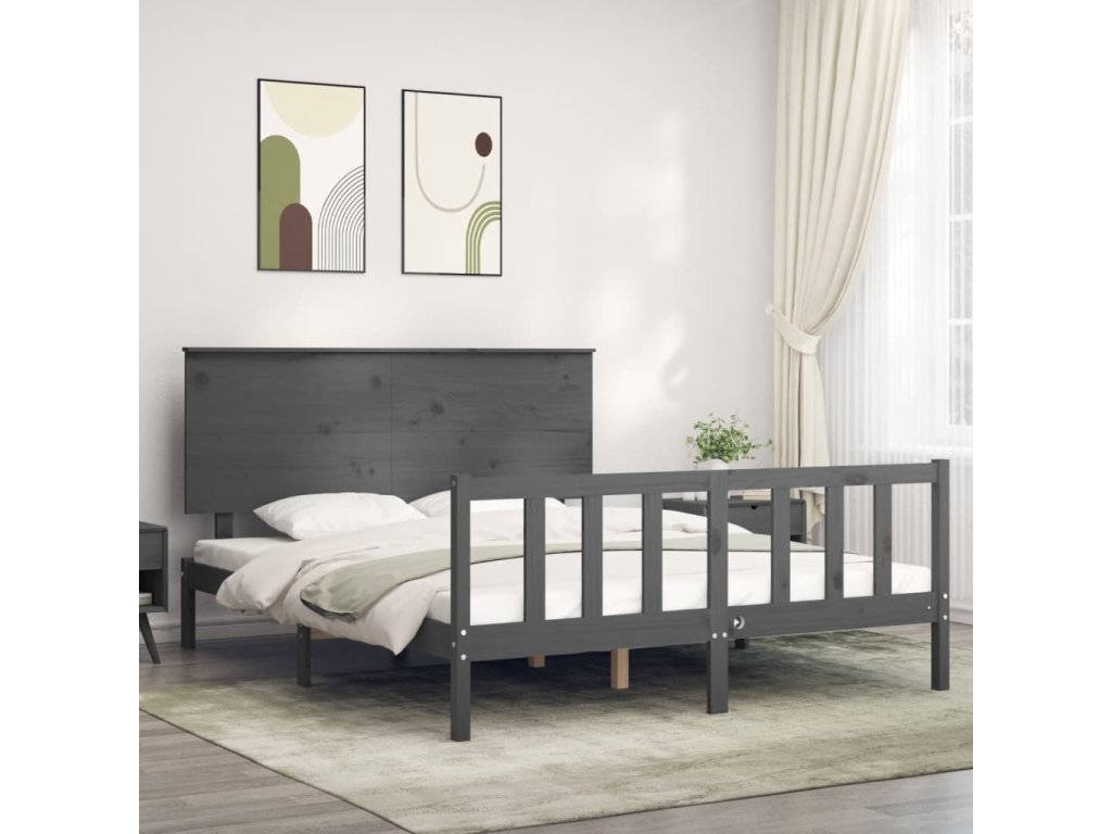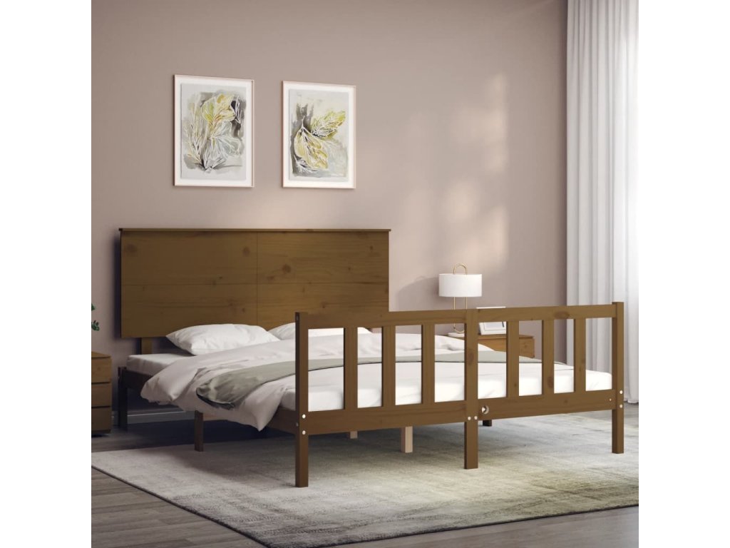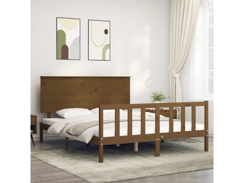 Rám postele s čelem King Size masivní dřevo [3193410]